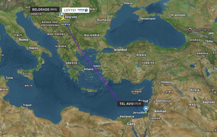 Израелски војни транспортер Боинг 747 кренуо је из Београда за Тел Авив ради испоруке оружја.