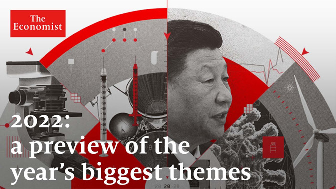 Део насловнице лондонског Економиста „Свет у 2022“: Ветроелектране заузимају важно место (скроз десно)