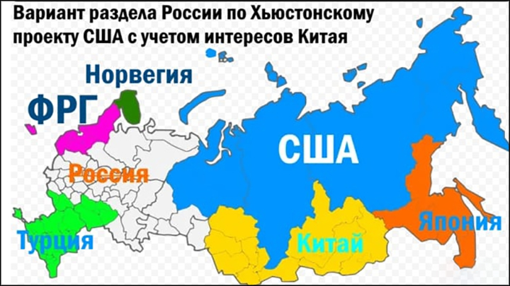 Политичар је говорио о постојању „Хјустонског пројекта“, који, према његовим речима, предвиђа територијално распарчавање Русије: предају Сибира под контролу Сједињених Држава, северозападних региона Немачкој, јужних територија и Поволжја Турској, а Далеког истока Јапану.