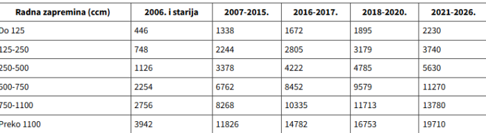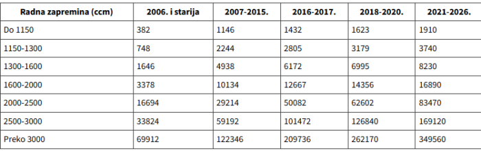 Критеријуми за обрачун износа пореза остали су и даље исти: запремина мотора и старост возила.