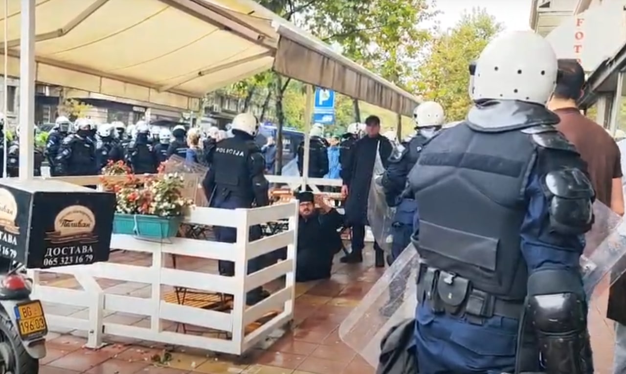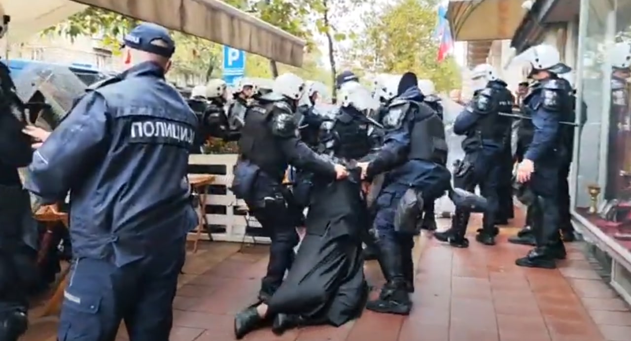 Полиција је из кафића истерала и свештена лица. Међу њима су мати Алимпија и владика Акакије