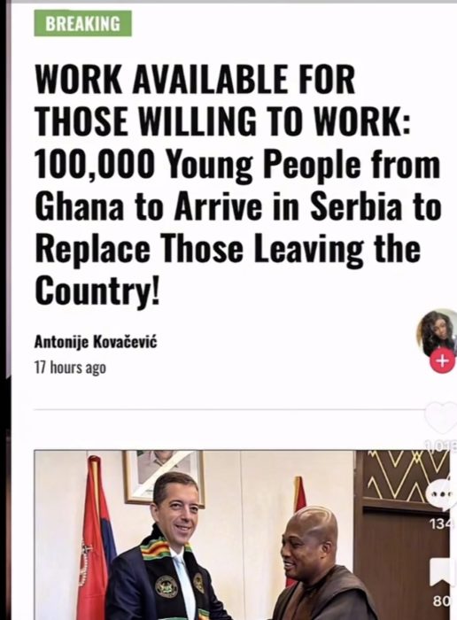 Његов текст се масовно дели по групама у Гани, уз обећање да Србија „широм отвара врата“ радницима из иностранства.