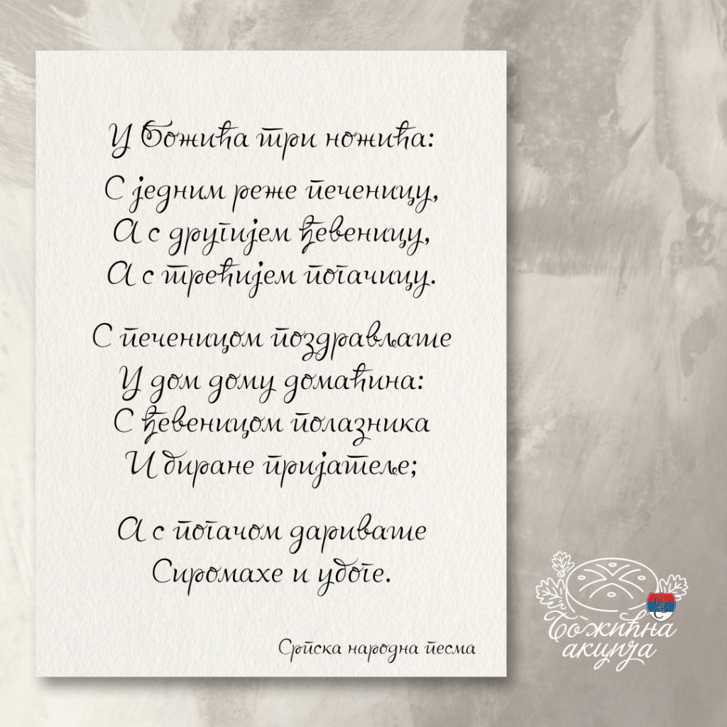 Раном зором, док пећ тихо пуцкета, мајчине руке по столу белом од брашна месe божићну чесницу. Прекрстивши тесто, мајка сакрива породични златник – залог здравља, слоге и берићета у години која долази.