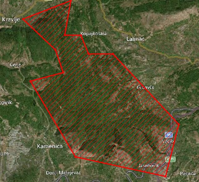 предвиђено је истражно рударско поље. Градска општина Црвени Крст , а посебно део око села