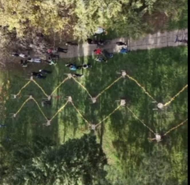 Њихов распоред није случајан, изломљена линија која их повезује подсећа на надстрешницу новосадске железничке станице, симбол прекинутих путева, прекинутих корака, прекинутих живота.